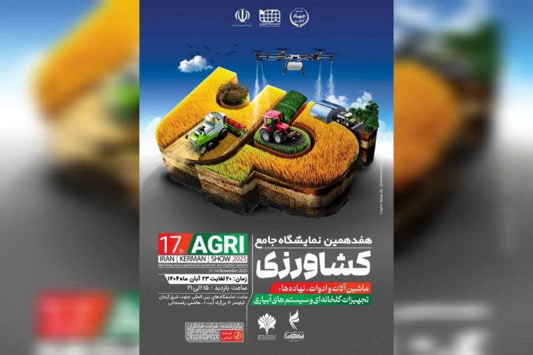 هفدهمین نمایشگاه جامع کشاورزی کرمان 2025 AGRI SHOW از ۲۰ تا ۲۳ آبان ماه ۱۴۰۴ در محل نمایشگاه بین المللی جنوب شرق کرمان برگزار می شود.